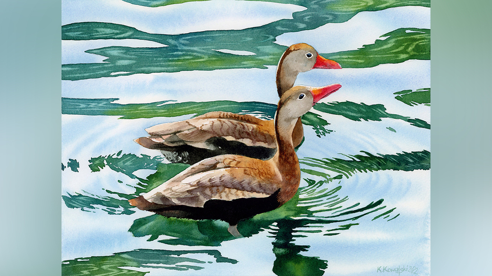 Learn how to paint these cute ducks, water ripples and water reflections with watercolors!