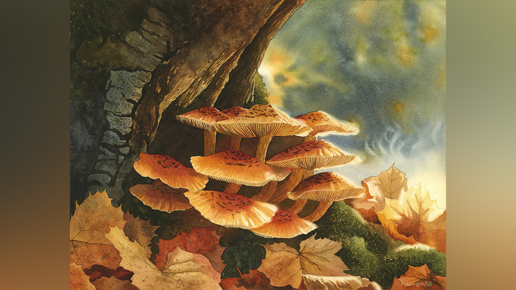 Golden Mushrooms: Exploring Fall’s Textures in Watercolors