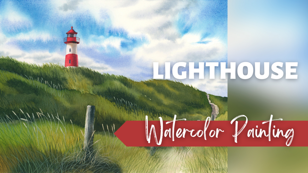 In this step-by-step watercolor class, I’ll guide you through painting a tranquil coastal landscape featuring a lighthouse, a soft sky, and rolling hills of tall grasses. It’s a peaceful scene full of atmosphere, and we’ll take our time building it layer by layer.